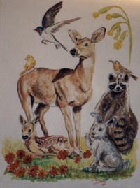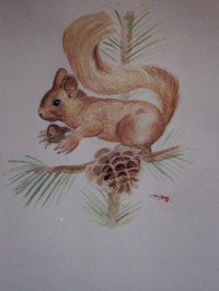 | Scoiattolo (1997) tempera | Animali del bosco (1997) Tempera | |||